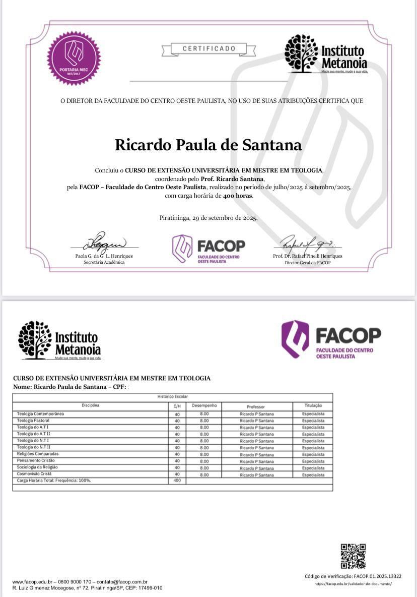 Se você é um leigo, membro ativo da igreja ou alguém que sempre teve interesse em estudar Teologia, esta é a oportunidade ideal para começar — ou continuar — sua jornada de aprendizado de forma organizada, acessível e reconhecida.