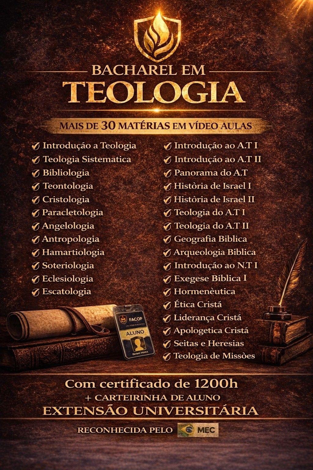 Este curso foi pensado para quem deseja crescimento espiritual com respaldo acadêmico, sem promessas enganosas ou títulos irregulares.